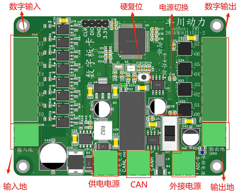 Control and read board parameters such as output voltage, output current, output mode, and read input voltage and current via FDCAN or CAN2.0B. Supports power-off memory function.